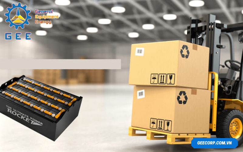 Sản xuất: Cung cấp năng lượng cho xe nâng điện trong các nhà máy, xưởng sản xuất, hỗ trợ vận chuyển nguyên vật liệu và thành phẩm.
