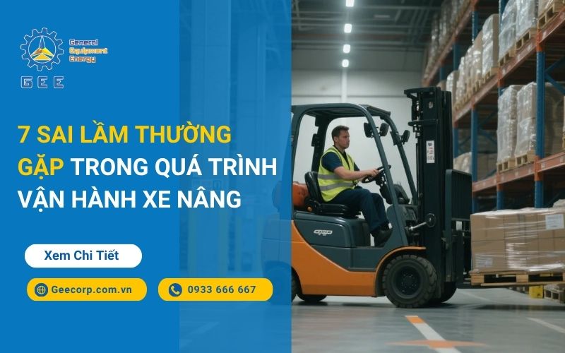 7 sai lầm phổ biến gồm: quá tải trọng, không kiểm tra xe trước ca, thiếu giao tiếp, tăng tốc khi làm việc, làm việc với kiện hàng không an toàn, thiếu năng lượng, và lạm dụng xe nâng.