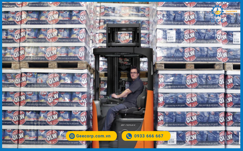 - Reach truck phù hợp block stacking nâng cao trong kho hẹp nhờ độ ổn định và chiều cao nâng lớn.