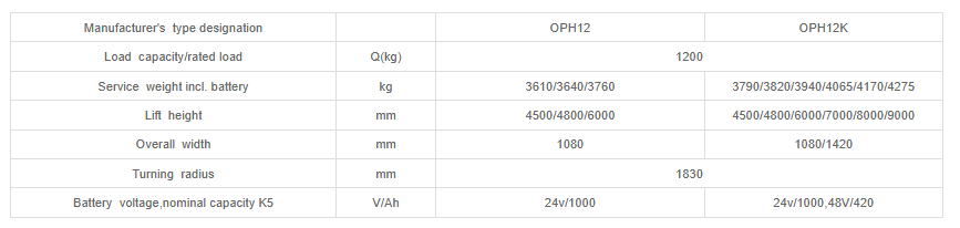 • Chiều cao nâng: Tùy chọn, tối đa 6000mm (OPH12) hoặc 9000mm (OPH12K).