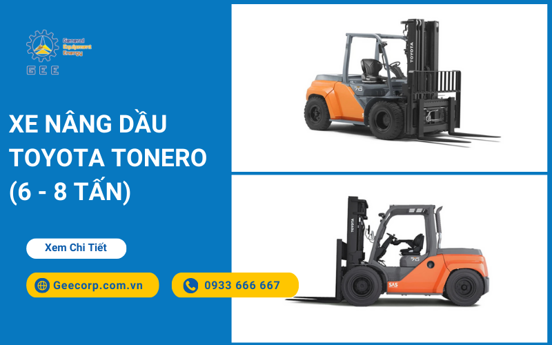 Là đại lý phân phối chính hãng của Toyota tại Việt Nam, GEE Việt Nam tự hào mang đến cho khách hàng những dòng xe nâng dầu Toyota chất lượng cao, dịch vụ hậu mãi chuyên nghiệp và giải pháp vận chuyển hàng hóa tối ưu. Khi chọn mua xe nâng dầu Toyota Tonero (6 - 8 tấn), khách hàng sẽ nhận được nhiều ưu đãi hấp dẫn, chính sách bảo trì bảo dưỡng toàn diện cùng các phụ kiện đi kèm đầy đủ.