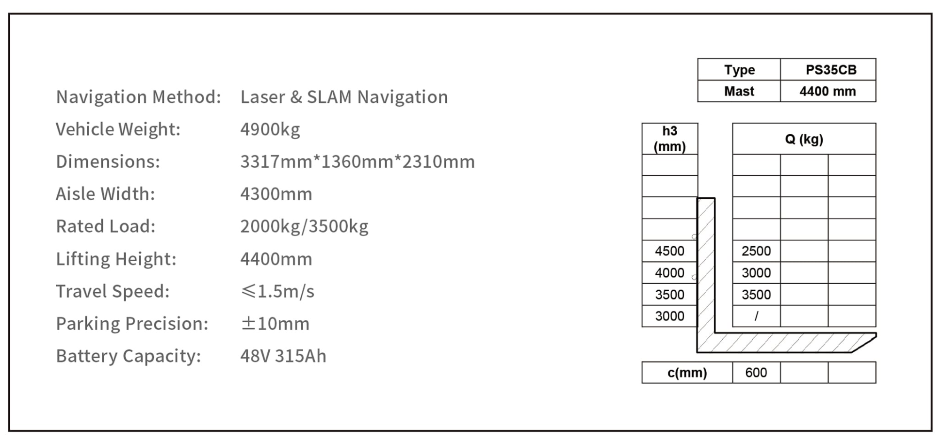 Xe nâng điện Counterbalance AGV Noblelift PS20/35CB với khả năng tải trọng từ 2 đến 3.5 tấn và các tính năng tự động hóa tiên tiến, là một giải pháp lý tưởng cho các ngành công nghiệp cần sự chính xác, hiệu quả và an toàn trong quản lý và vận chuyển hàng hóa.