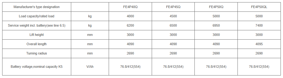 Thông số kỹ thuật xe nâng điện Lithium Noblelift FE4P40-50Q (4-5 Tấn)