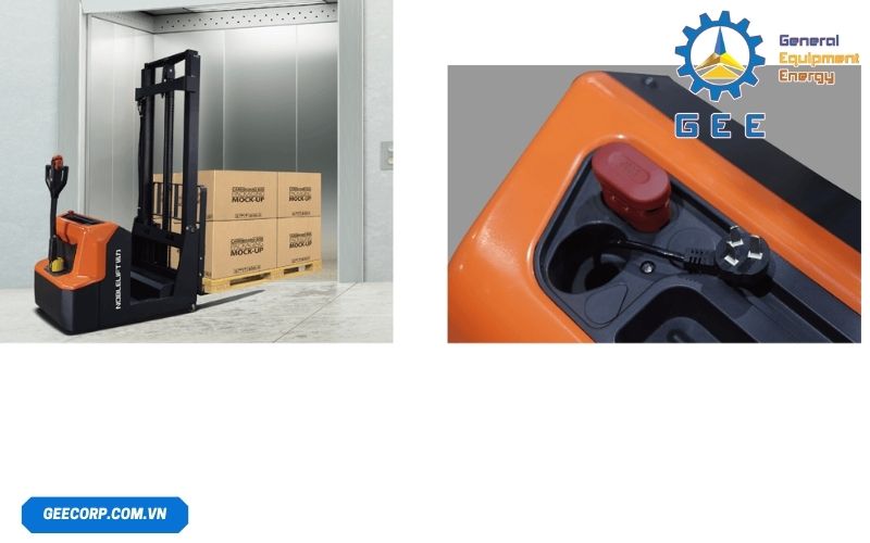 - Trọng lượng nhẹ: Xe có trọng lượng nhẹ, phù hợp cho việc sử dụng trên tầng lửng và di chuyển trong thang máy.