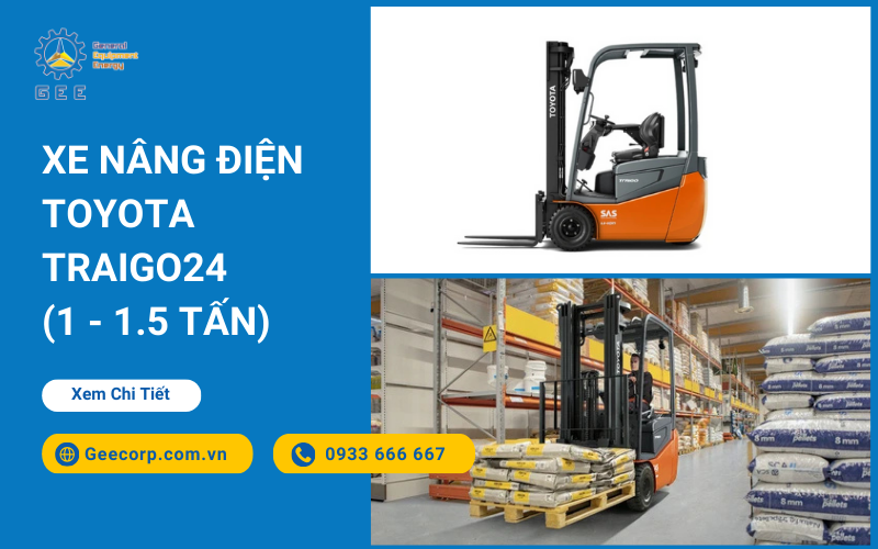 Xe nâng điện Toyota Traigo24 (1 - 1.5 tấn): Chi tiết về hệ thống nâng hạ mạnh mẽ và các cảm biến an toàn, được phát triển để đáp ứng các yêu cầu khắt khe trong kho bãi