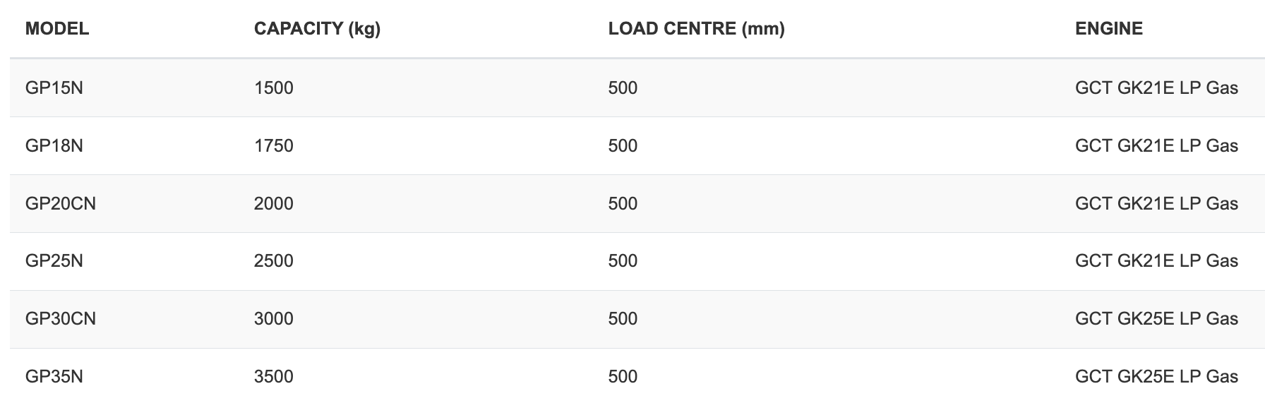 Thông tin kỹ thuật xe nâng gas ngồi lái CAT GP15-35(C)N - LPG (1.5 - 3.5 Tấn)